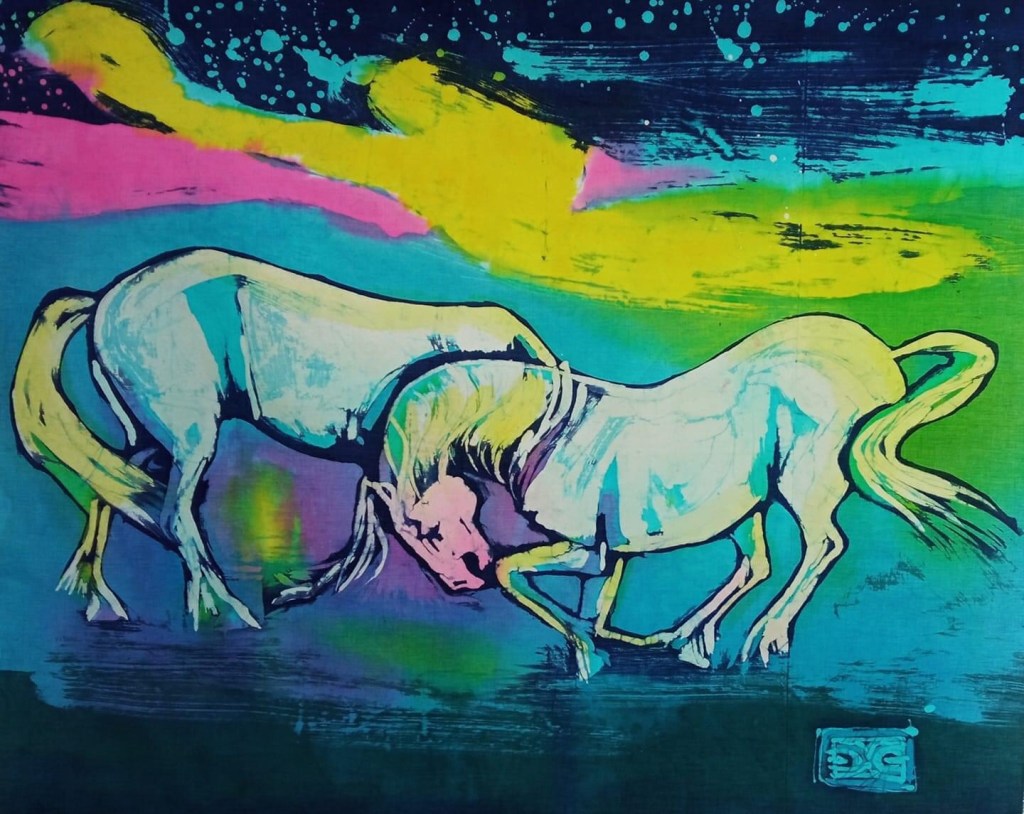 Reina i Rentier Joanna Czubak 2022 akwarelaCu Roi i Cillian autor Joanna Czubak – akwarelaCan Can autor Joanna Czubak Camellia, autor Joanna Czubak, batikCu Roi i Cillian, autor Joanna Czubak, batik
